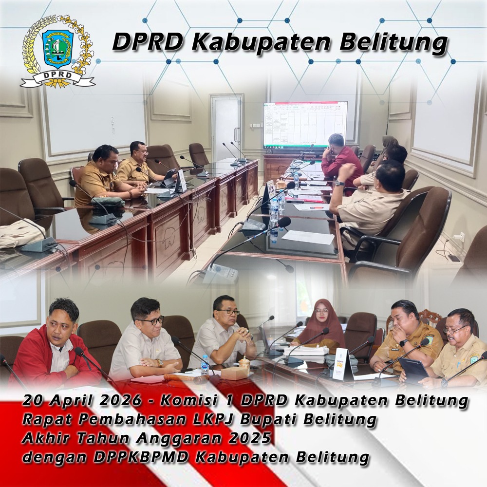 20 April 2026 – Komisi 1 DPRD Kabupaten Belitung Rapat Pembahasan LKPJ Bupati Tahun Anggaran 2025 dengan DPPKBPMD Kabupaten Belitung