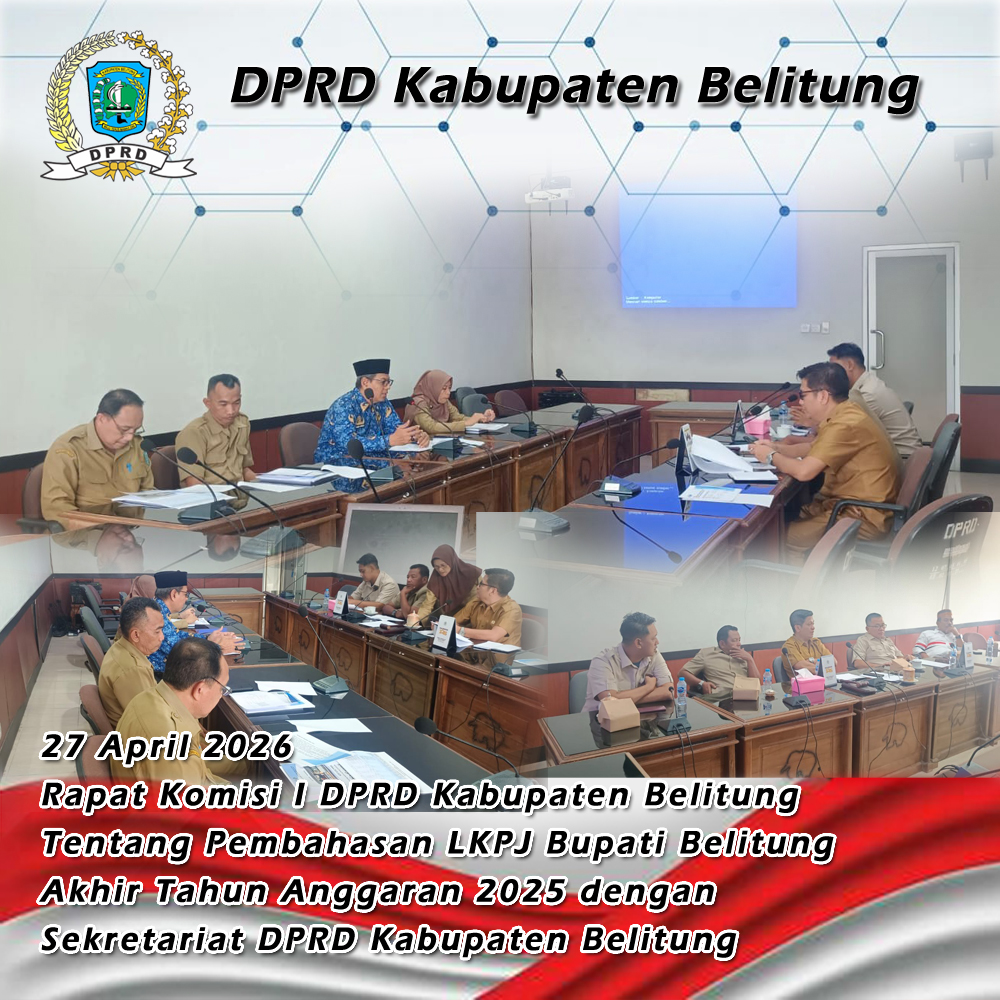 27 April 2026 – Rapat Komisi I DPRD Kabupaten Belitung Tentang Pembahasan LKPJ Bupati Belitung Akhir Tahun Anggaran 2025 dengan Sekretariat DPRD Kabupaten Belitung