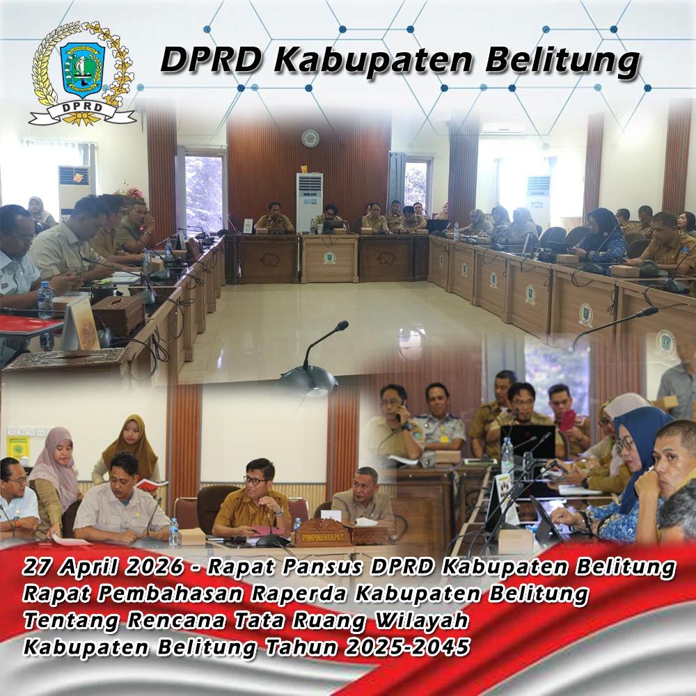 Rapat Pembahasan Raperda Kab Belitung tentang RTRW Kabupaten Belitung Tahun 2025-2045 April 28, 2026April 28, 2026 Web Admin DPRD 27 April 2026 – Rapat Pembahasan Raperda Kab Belitung tentang RTRW Kabupaten Belitung Tahun 2025-2045